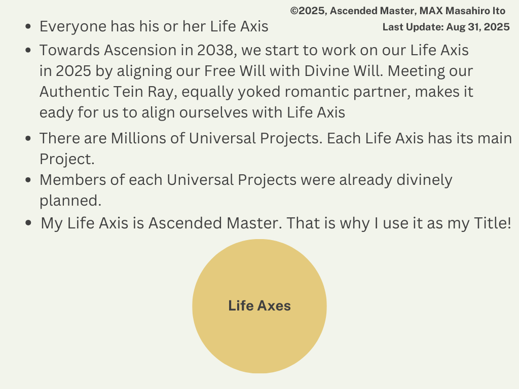 Life Axes is Divine Word for Life Mission. That tells you who you are and your main role for coming years till 2038 Ascension.